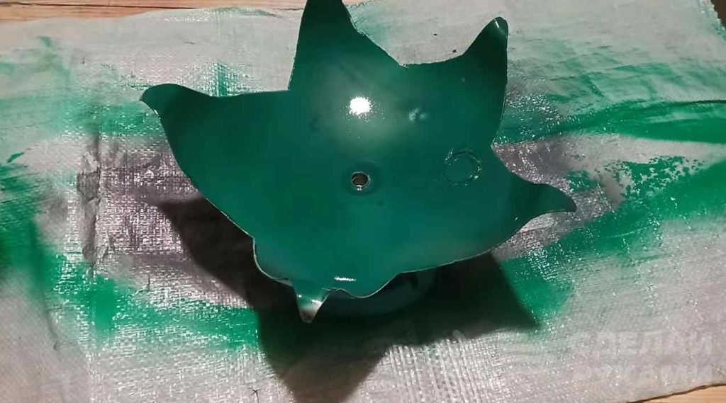 На следующем этапе обрабатываем лепестки болгаркой и загибаем. Затем шлифуем нижнюю и верхнюю часть урны, и красим.