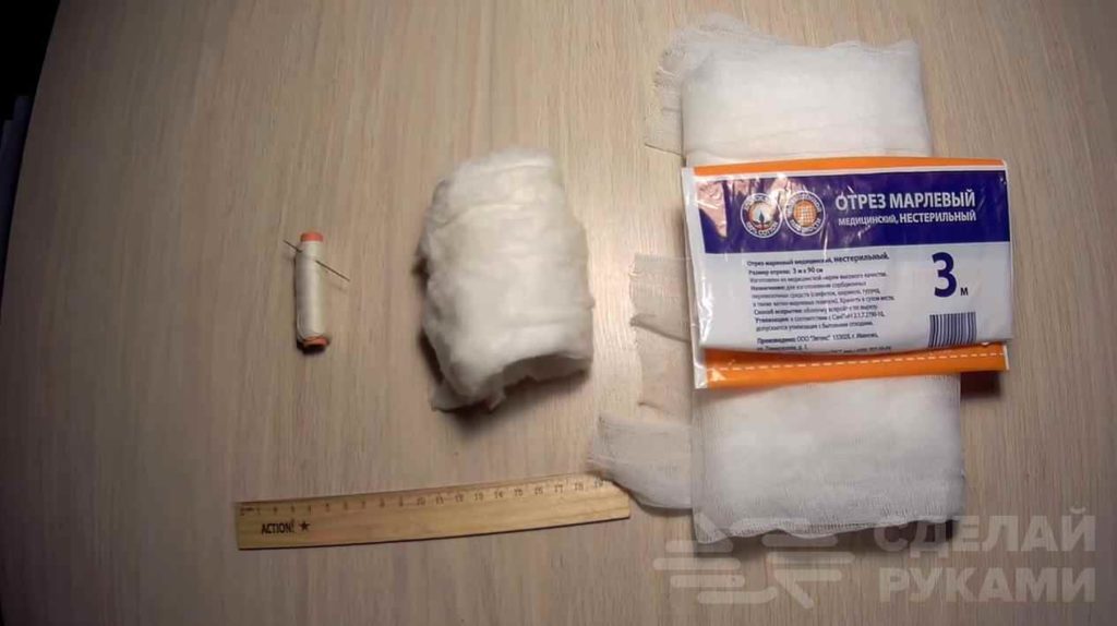 Как мы и обещали в начале статьи, хотим поделиться с вами вторым способом, как сделать повязку из марли в домашних условиях.