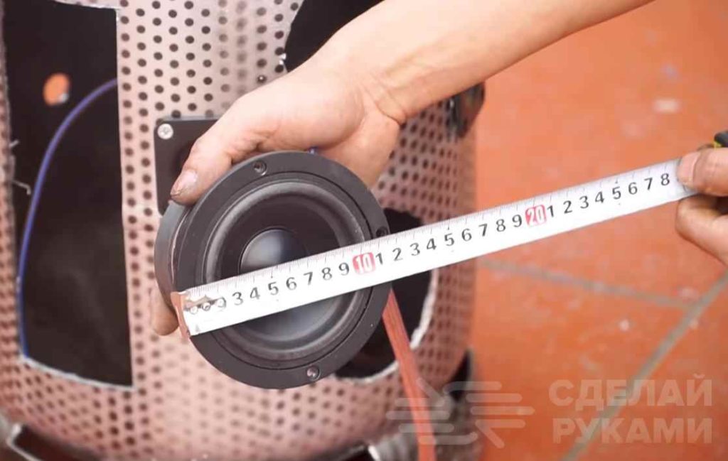 На следующем этапе автор красит баллон. В маленькие круглые отверстия вставляем высокочастотные динамики и прикручиваем их к корпусу.