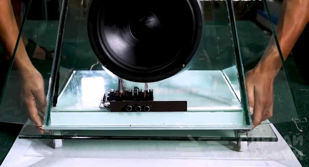 В этом обзоре автор показывает, как сделать мощную звуковую колонку, используя толстое листовое стекло толщиной 8 мм, высокочастотные динамики и сабвуфер на 100 W.