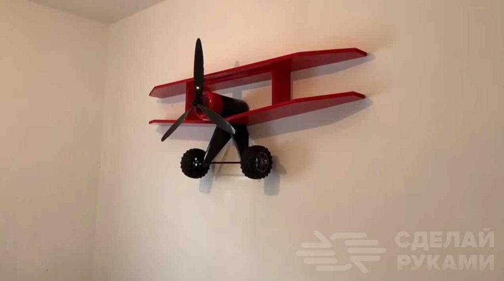Будем делать полку в виде передней (лицевой) части аэроплана. Смотрится она очень необычно и интересно. Детям такое однозначно понравится.