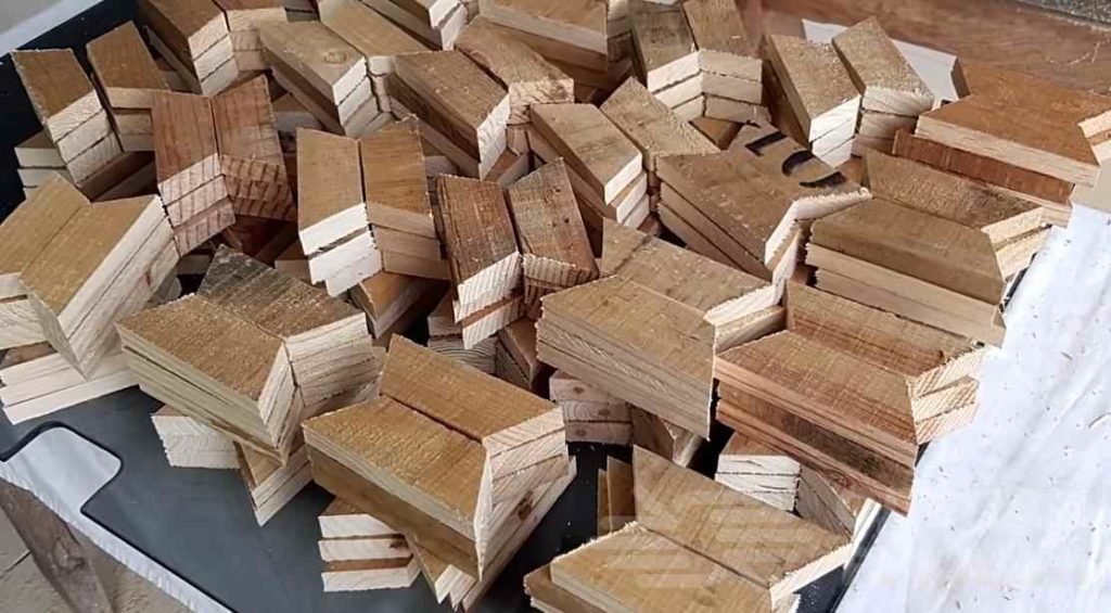 Затем на циркулярной пиле надо напилить заготовки подходящего размера (со срезанными под углом краями).