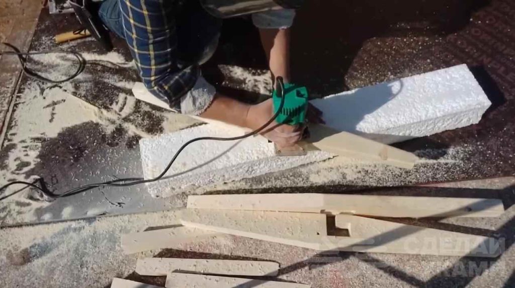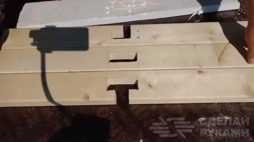 На следующем этапе с помощью электролобзика и ручной ножовки автор вырезает в досках пазы нужной формы. Их надо обработать напильником по дереву.
