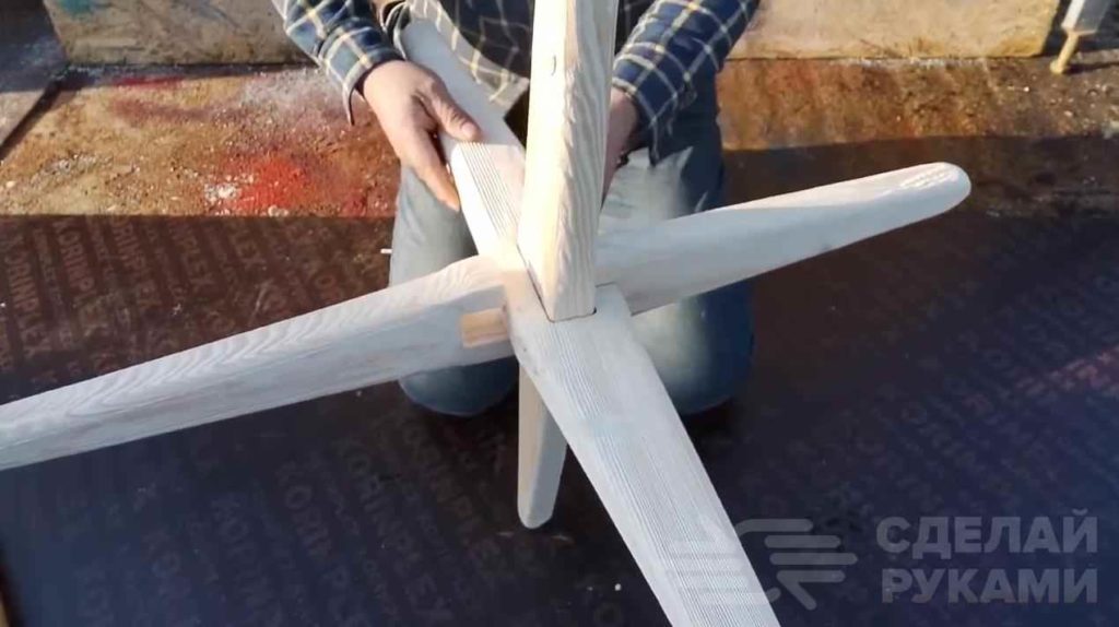 Поскольку столешницу автор использует уже готовую, то подробно рассмотрим именно процесс изготовления деревянных ножек, которые одновременно выполняют и роль опоры для столешницы.