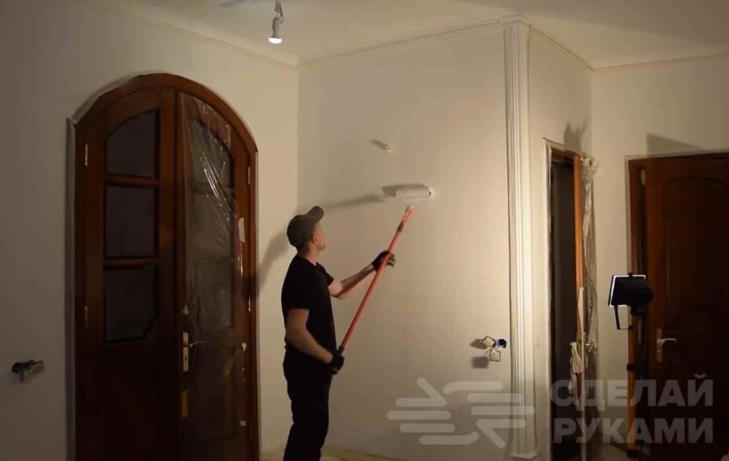 Для этого подойдет любая интерьерная краска, но невлагостойкая, потому что, когда мы будем наносить на нее декоративное покрытие влага из шпаклевки должна немного впитываться внутрь. В этом случае будет происходить фиксация рисунка.