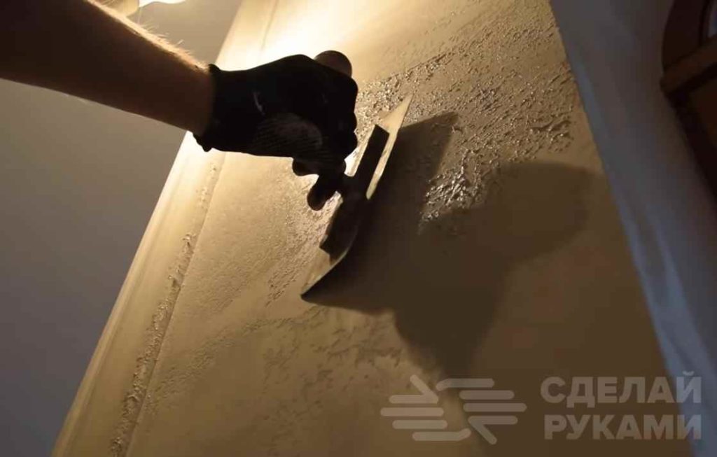Для работы можно использовать различные материалы — например, фактурную штукатурку или шпаклёвку.