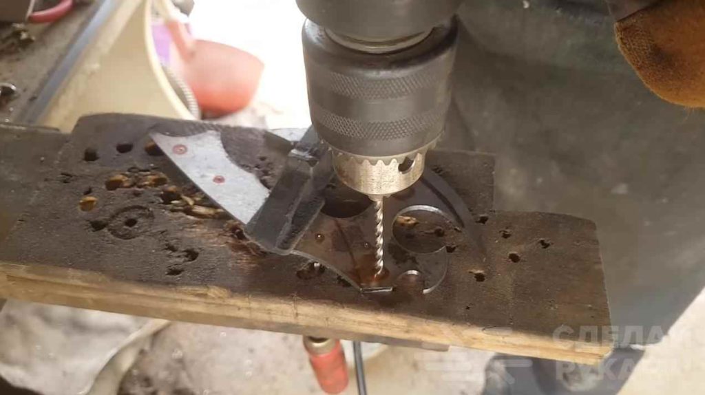 Далее по предварительно сделанной разметке автор сверлит в обработанной заготовке отверстия.