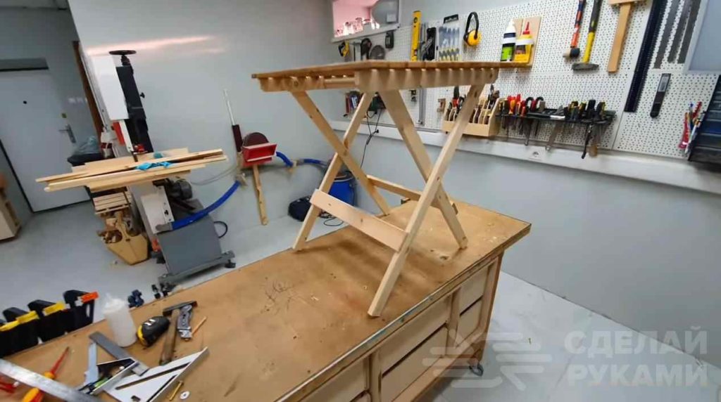 Подробно о том, как сделать удобный раскладной столик из досок для дачи, можно посмотреть на видео ниже. Идея принадлежит автору YouTube канала Crazy Workshop.