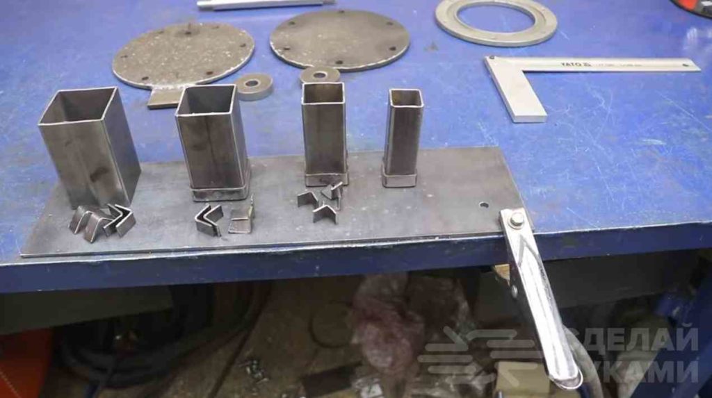 Первым делом необходимо будет отрезать заготовки из профильных труб 60*60 мм и 50*50 мм длиной по 100 мм, 40*40 мм и 30*30 мм — длиной по 95 мм.