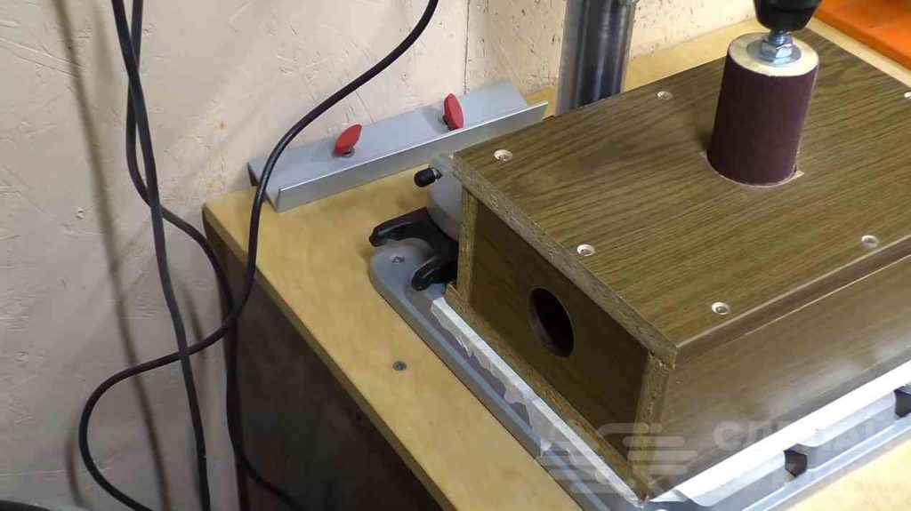 В целом, данная самоделка довольно проста в изготовлении. Необходимо будет сделать шлифовальную насадку в виде барабана, на который потом наклеивается наждачка, а также рабочий стол с технологическими отверстиями для отвода пыли.