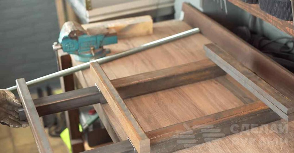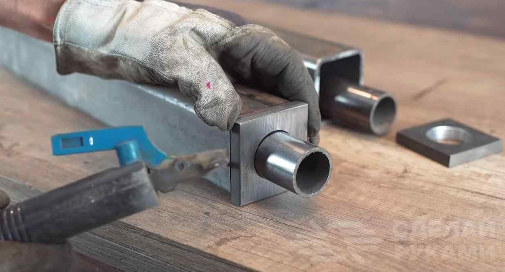 Профильные трубы автор использует квадратные, разного размера, чтобы можно было вставить одну в другую. Заготовки из толстого металла будут выполнять роль прижимных губок.