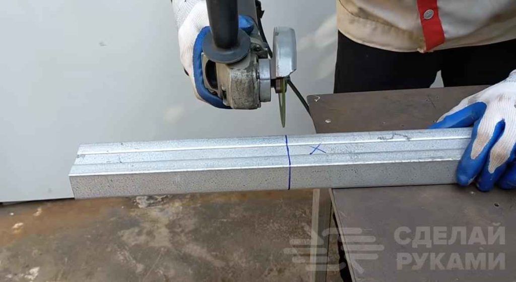 Первым делом определяемся с длиной будущего инструмента и отрезаем необходимую длину профиля. Замеряем внутренний размер профиля, и отрезаем кусочек квадратной трубы такого же размера.