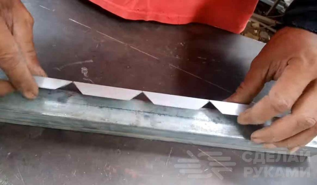 Для этого потребуется изготовить простой шаблон. Автор использует за основу уголок, изготовленный из тонкого листового металла.