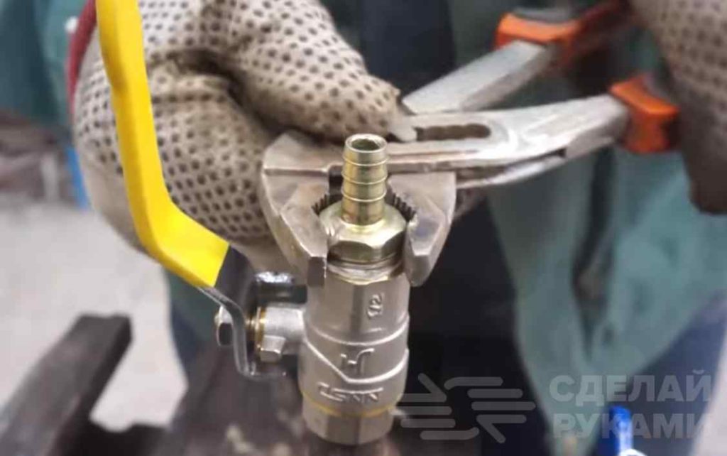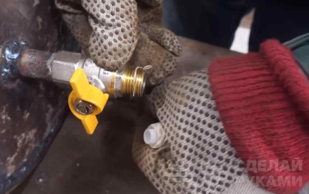 Накручиваем ниппель для установки крана и последующим присоединением штуцера для подачи воздуха. Все соединения герметизируем уплотнительной лентой либо льном.