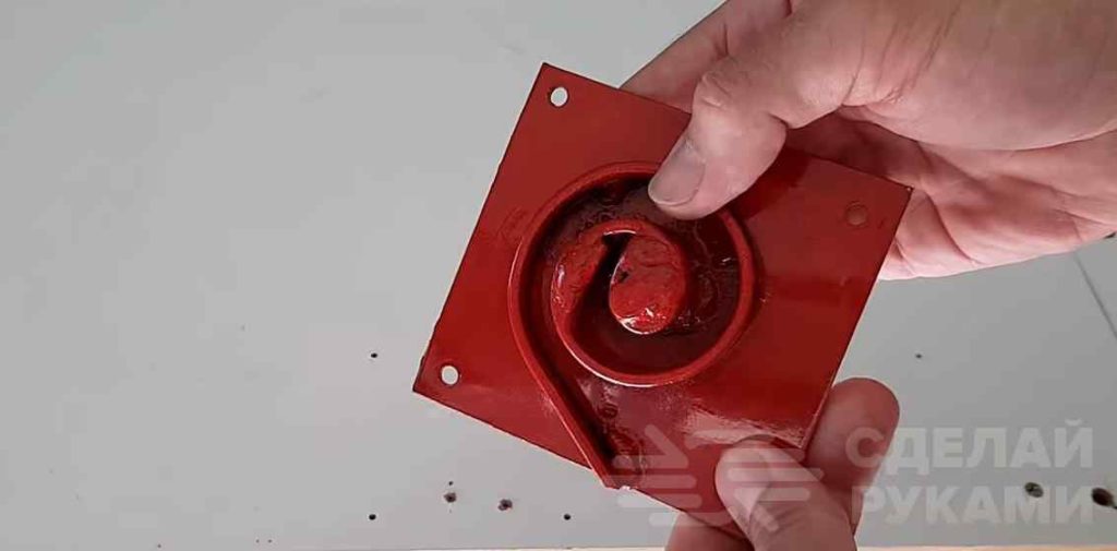 В пластине сверлим четыре отверстия (для крепления к верстаку), после чего можно ее зачистить болгаркой и покрасить. Как видите, сделать кондуктор для завитков совсем несложно.
