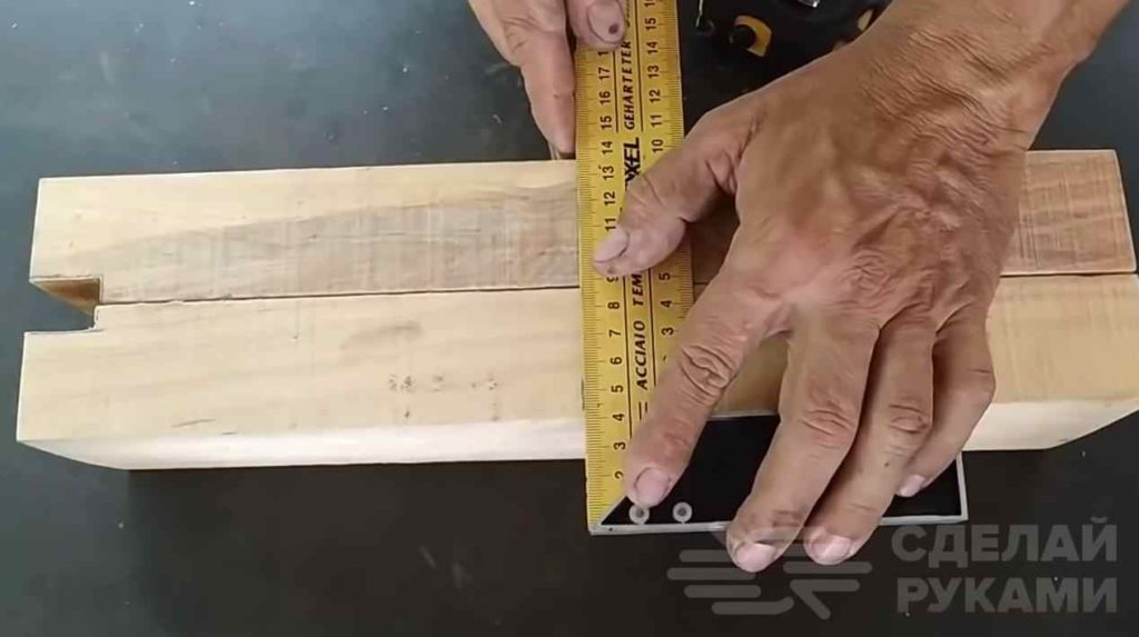 На деревянных брусках производим все необходимые разметочные работы, согласно чертежу, и выбираем всё лишнее. Обе части почти готовы, остаётся на одной из них установить опорный столик.