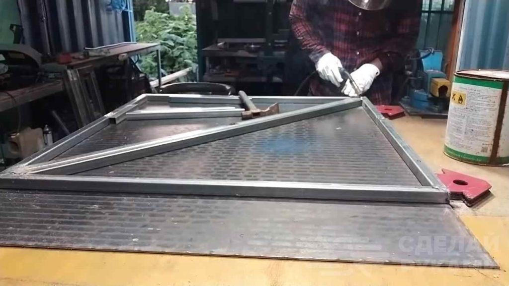 Причем не на полозьях, а при помощи подшипника и горизонтальных шарниров. В данном обзоре мы расскажем, как сделать такие входные двери для мастерской, имея под руками немного металла и досок.