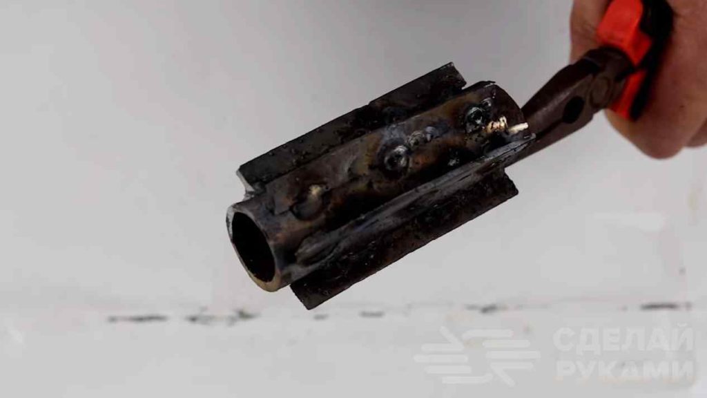 Первым делом необходимо будет сделать вал. Для этого отрезаем кусок стальной трубы длиной около 10 см. Далее нарезаем полосы металла длиной 8-9 см и шириной около 5-6 мм.