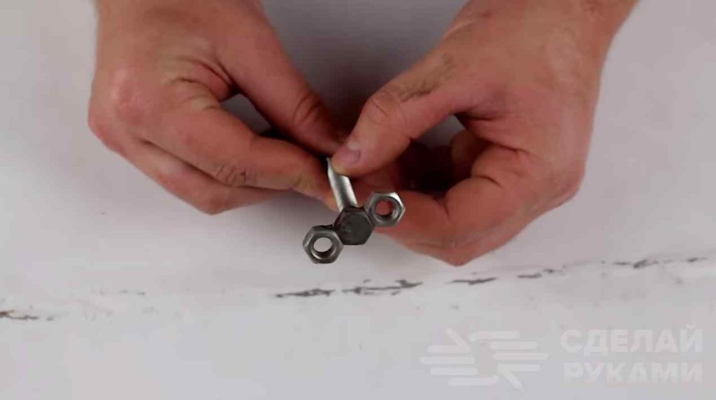 Для изменения угла наклона площадки автор делает болт-вороток. К шляпке болта просто привариваем две гайки.