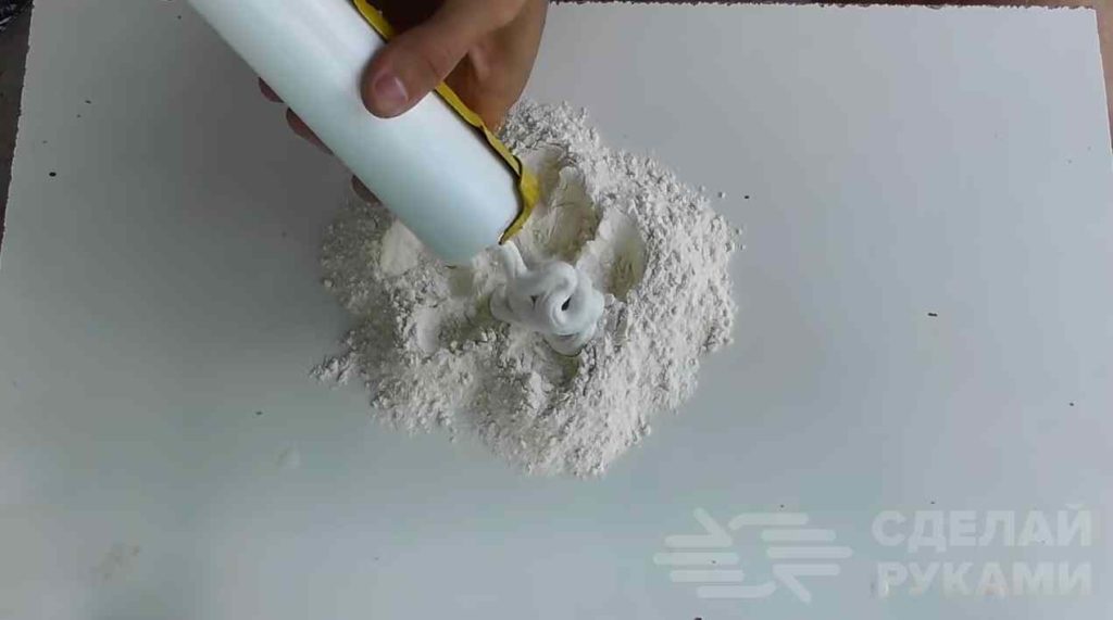 После этого из герметика и муки необходимо будет приготовить силиконовое тесто. Оно должно быть мягким и эластичным.