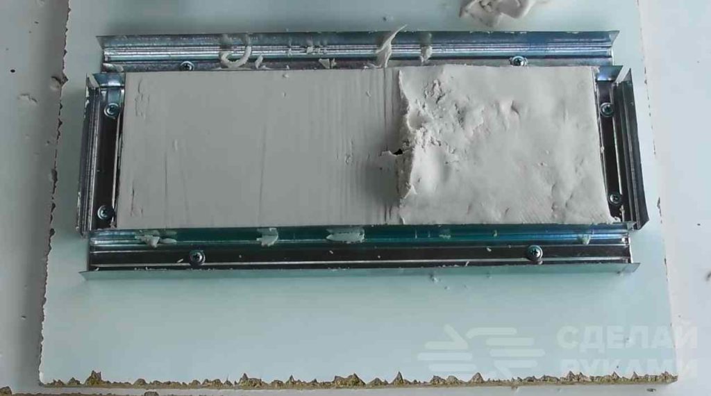 Силиконовое тесто равномерно распределяем по всей поверхности, после чего его нужно хорошо уплотнить. Используя кусок профиля, автор аккуратно срезает верхний слой, чтобы поверхность была ровной.
