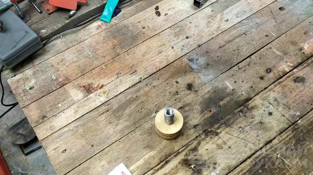 В отверстие на эпоксидный клей вклеиваем удлиненную сантехническую гайку с внутренним диаметром 14 мм, которую предварительно надо обточить.
