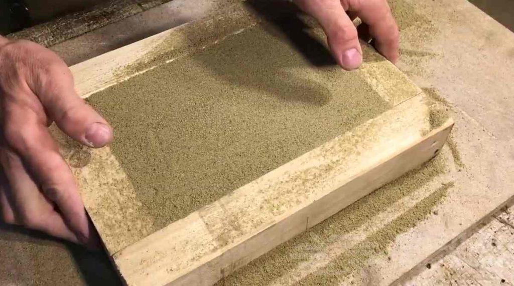 Деревянную рамку необходимо заполнить подготовленной формовочной смесью. Ее нужно утрамбовать, а верх — выровнять.