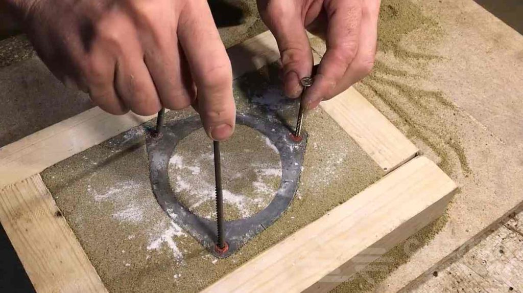 Обратите внимание, что заливать форму нужно предельно аккуратно, но в то же время — быстро, чтобы алюминий не успел схватиться. После остывания останется только обработать деталь и просверлить отверстия.