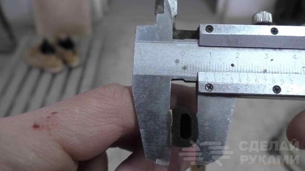 Первым делом при помощи штангенциркуля необходимо определить, насколько уплотнитель будет сжиматься. В данном случае — это 8 мм.