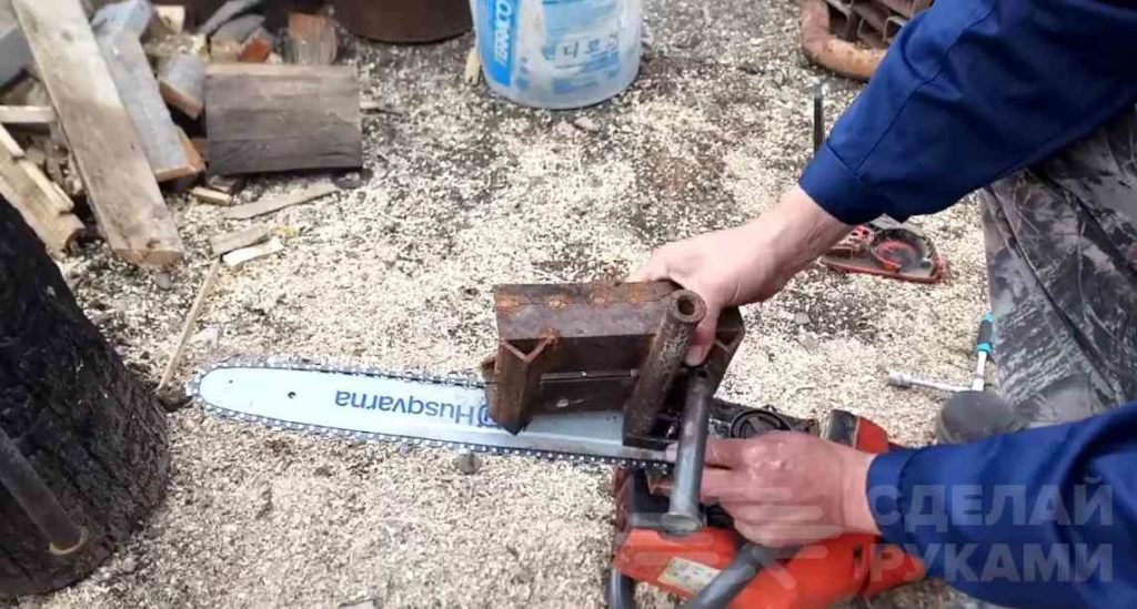 Первым делом необходимо будет сделать саму насадку (или правильнее будет сказать — оснастку) для электро- или бензопилы.