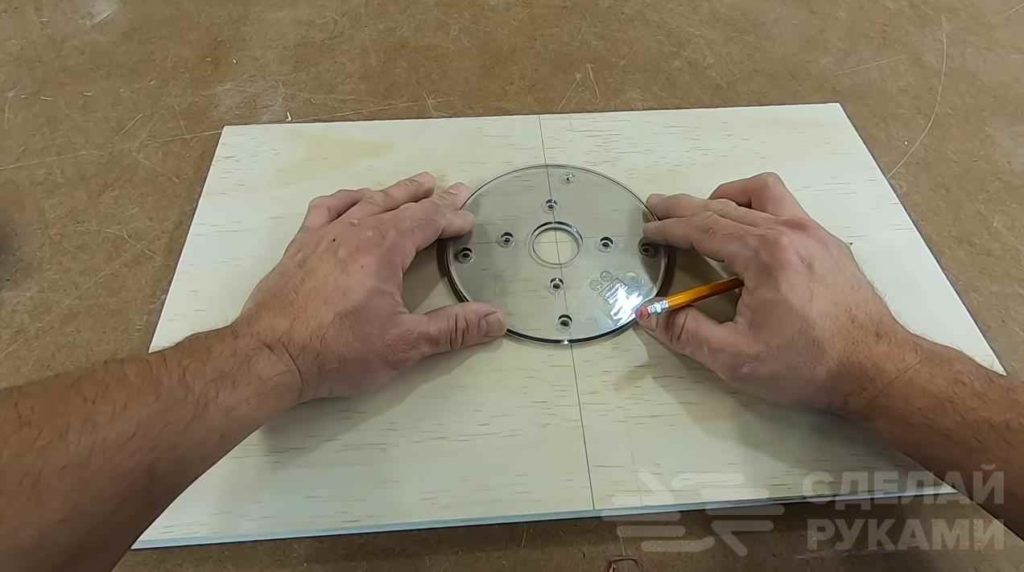 После этого необходимо будет сделать посадочное место для опорной подошвы ручного фрезера. Устанавливаем ее и прикручиваем на шурупы.