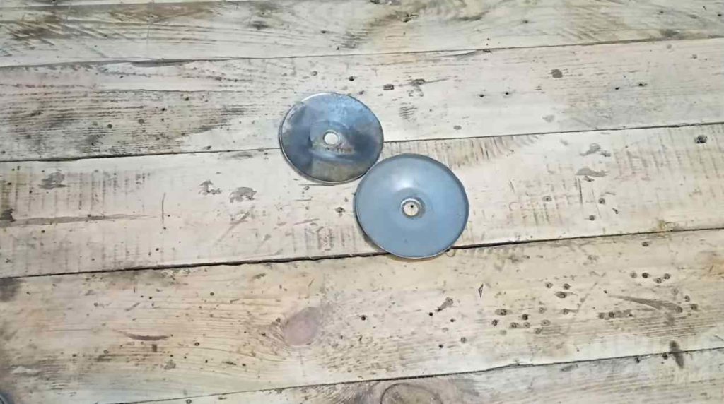 Первым делом нужно снять крышки с фильтров, и при помощи болгарки вырезать из них середину. Должно получиться два одинаковых диска.