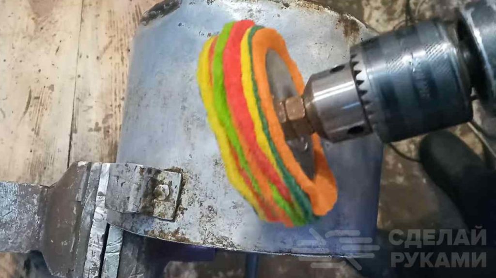 В результате получилась недорогая насадка на дрель, которая отлично подойдет для «деликатной» чистки алюминиевых кастрюль и сковородок.