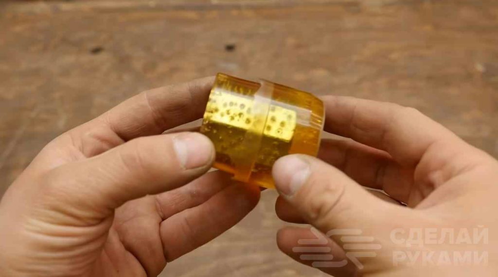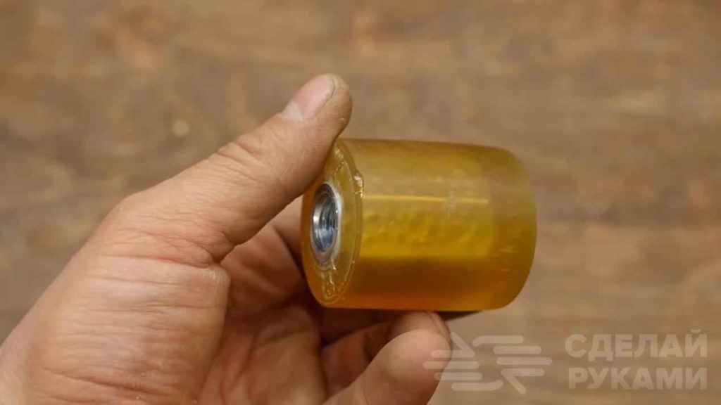 Когда смола застынет, останется только разобрать форму и обработать ролик наждачкой.