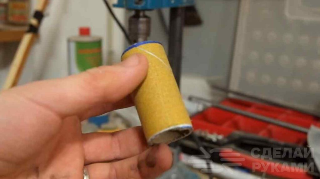 После этого на картонную втулку с помощью клея ПВА приклеиваем наждачную бумагу нужной зернистости. Можно сделать много втулок, и при необходимости менять их.