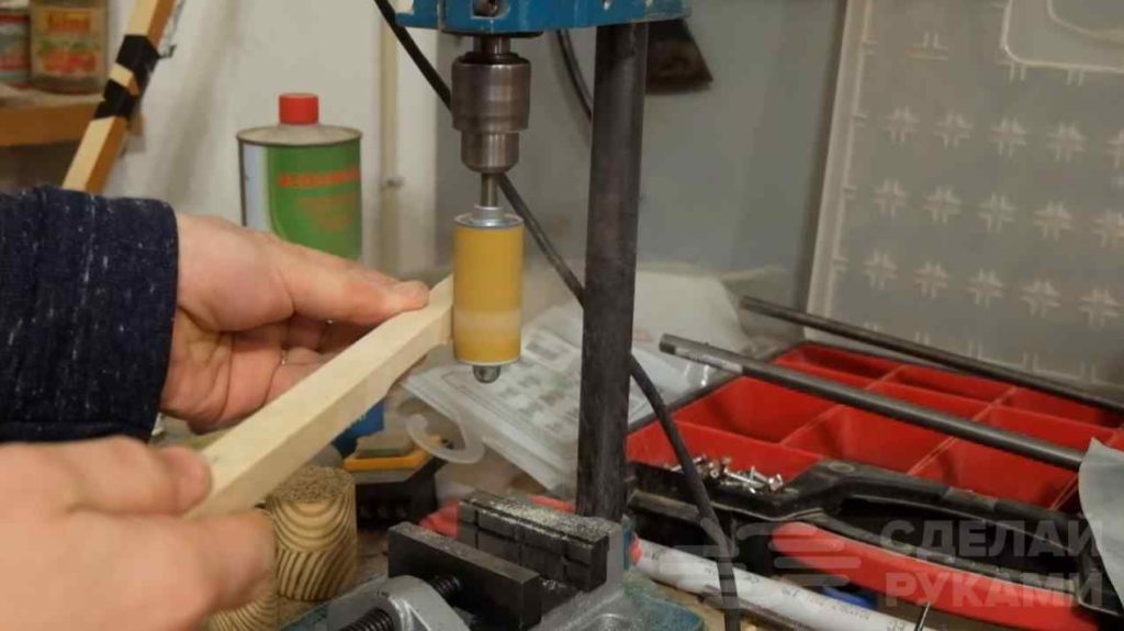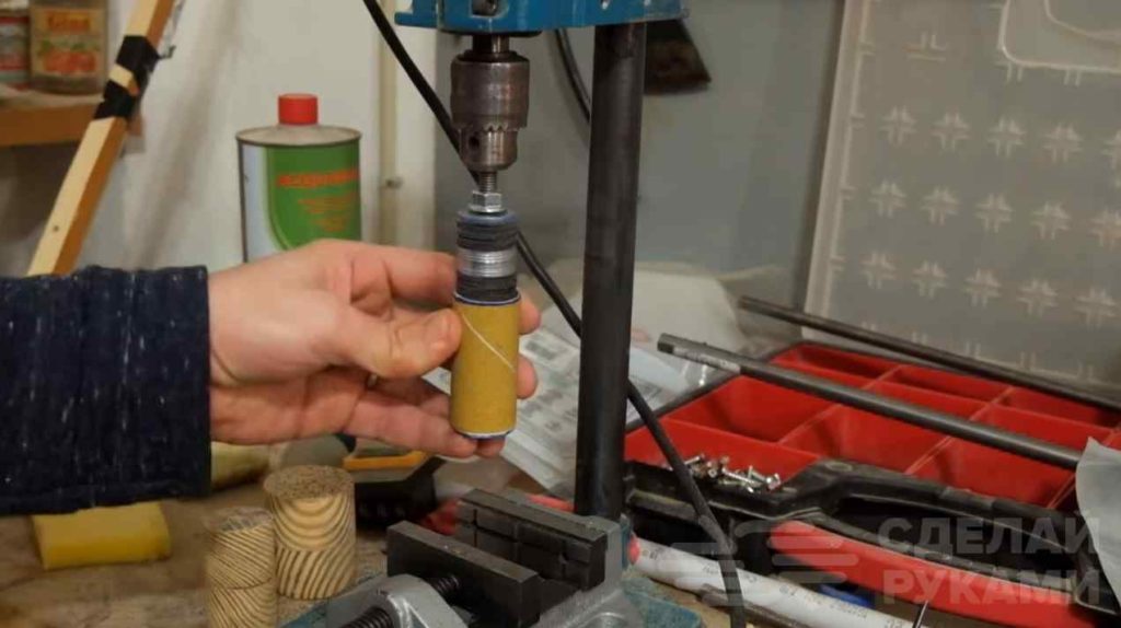 Устанавливать такие самодельные насадки можно как на дрель или шуруповерт, так и на сверлильный станок.