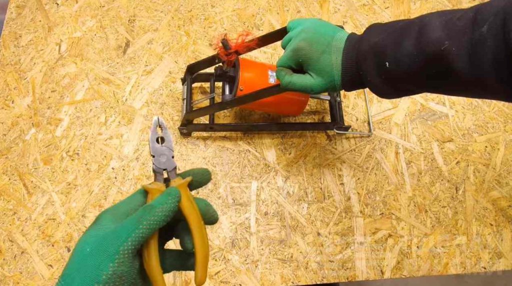 Подробнее о том, как сделать торцовку из ручной циркулярки и старого насоса, можно посмотреть в авторском видеоролике.
