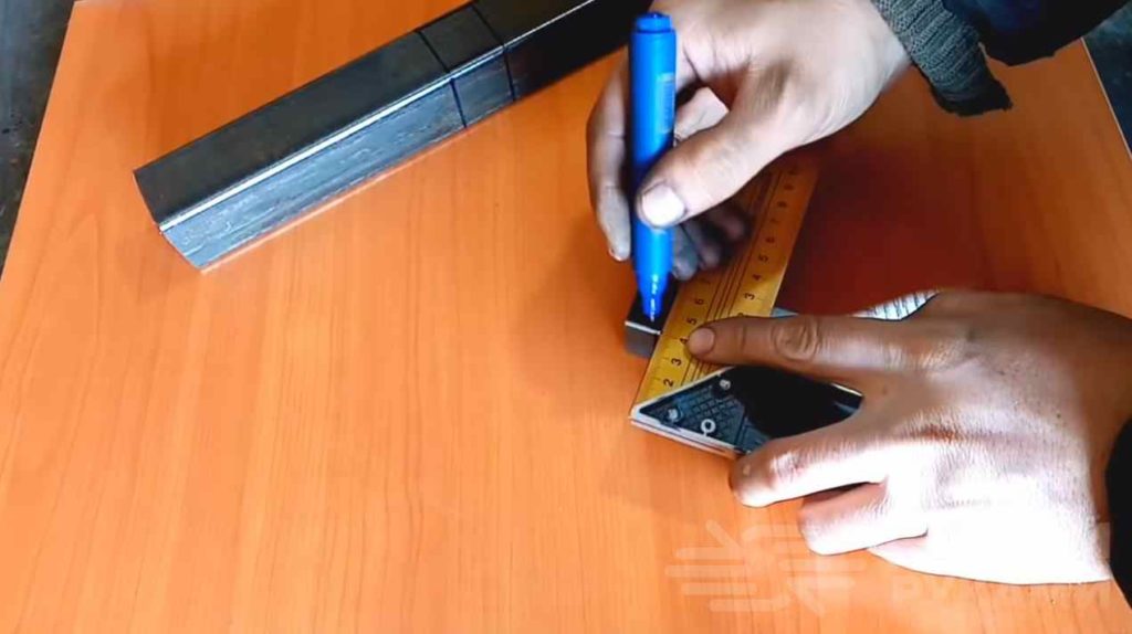 Первым делом вооружаемся угольником и маркером, и чертим линии на каждой из сторон профиля 40х40 мм. Потом отступаем 30 мм (на ширину второго профиля) и снова делаем разметку.