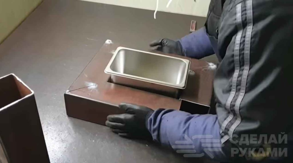 Свободное пространство между профильными трубами необходимо для установки емкости из пищевой нержавейки.