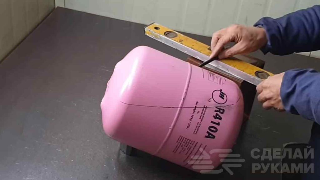 Сначала необходимо будет выкрутить вентиль и срезать ручки в верхней части баллона. После этого делаем разметку и вырезаем часть стенки. Из листового металла толщиной 3-4 мм сразу вырезаем варочную поверхность.