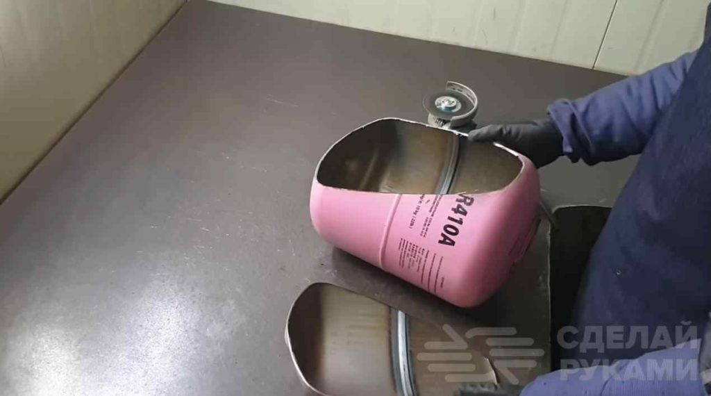 При наличии автомобиля эту печурку без проблем можно взять с собой на рыбалку или на отдых за городом. Делать ее будем из фреонового баллона.