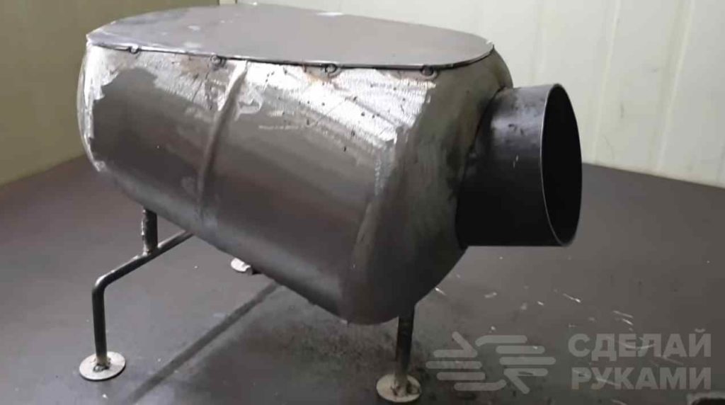 На последнем этапе останется только изготовить и установить дверцу для топочной камеры. При желании можно сделать ее со смотровым окошком.