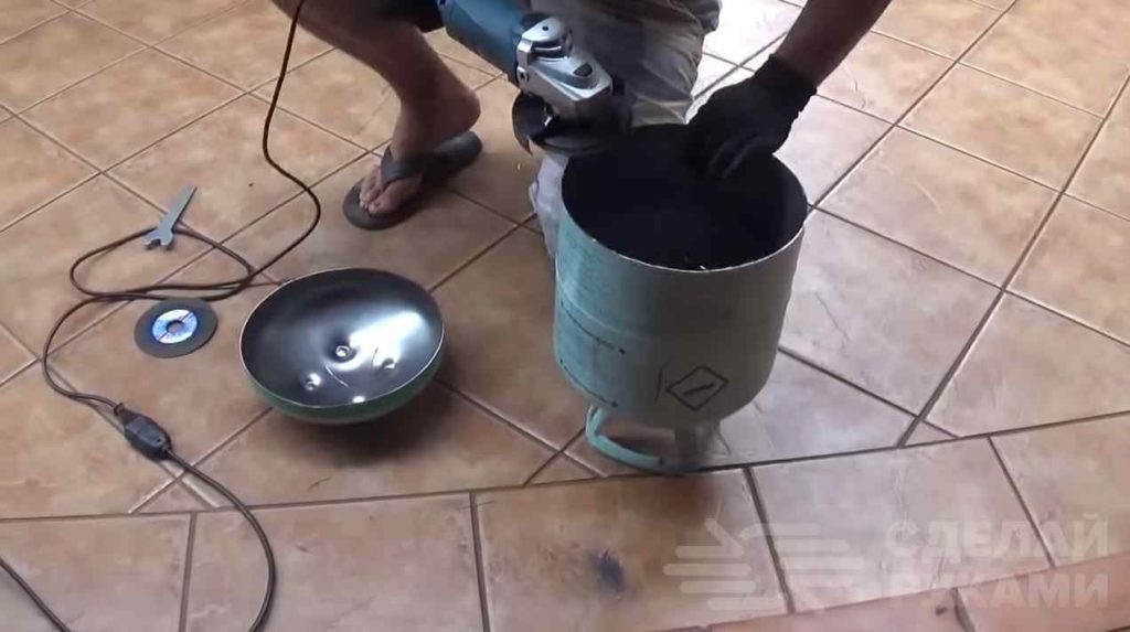 Переворачиваем и размечаем линию разреза. Срезаем крышку и зачищаем края, при помощи абразивного диска.
