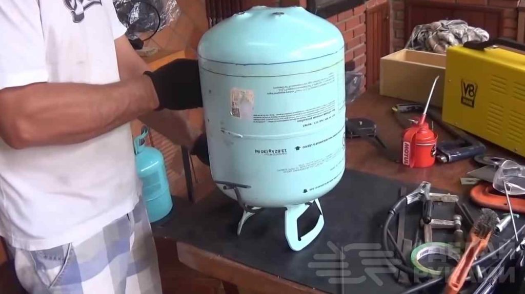 Для начала удостоверимся в отсутствии горючих паров в баллоне. Сворачиваем вентиль и заполняем до верху водой весь баллон.