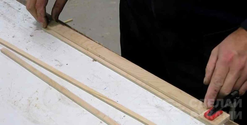Для изготовления раздвижной линейки потребуется отрезок фанеры толщиной 6 мм и размером 20х50 см. Можно взять за основу и дерево.