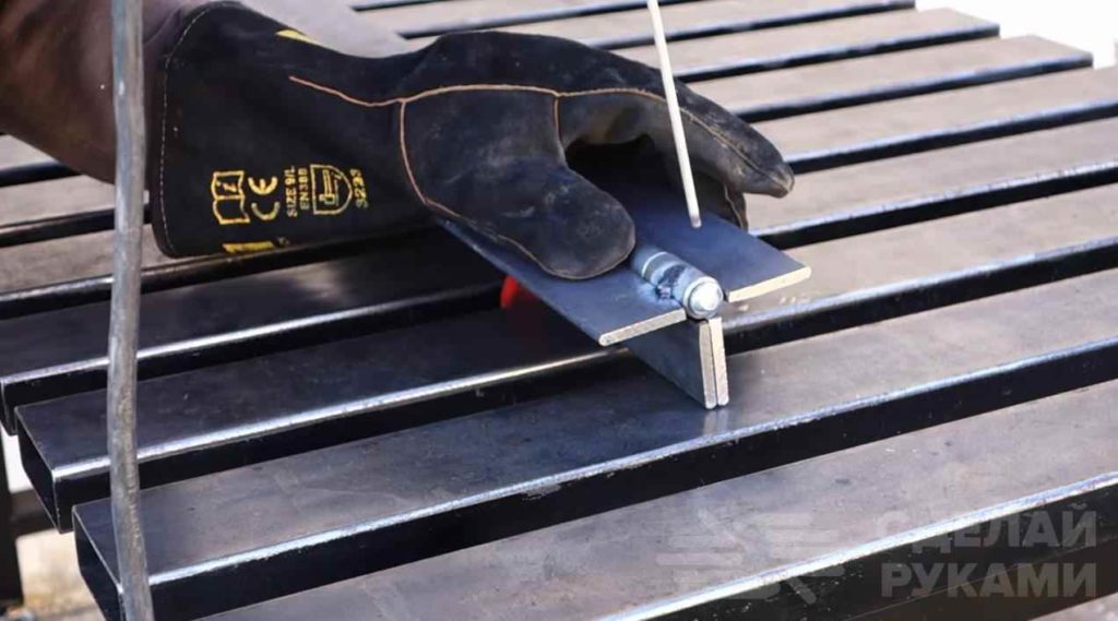 На болте, со стороны шляпки, привариваем небольшой кусочек трубы, и далее привариваем перпендикулярно ещё один кусочек трубы (рукоятка для фиксации).