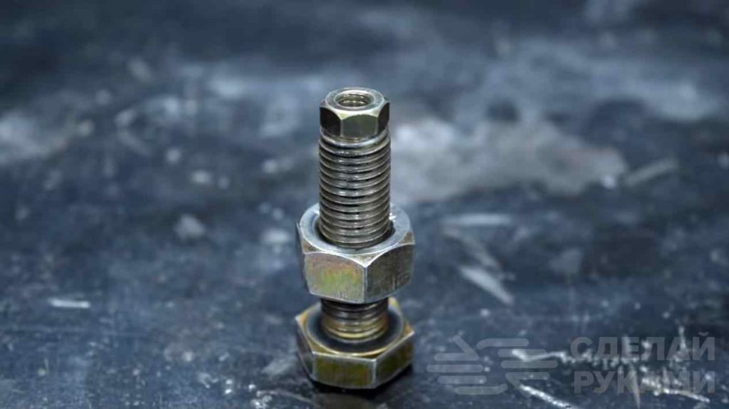 Первым делом подбираем болт нужной длины с гайкой. К концу болта необходимо будет приварить маленькую гайку.