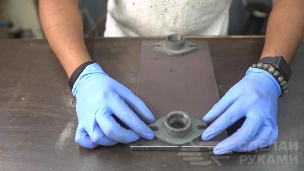 Первым делом в основании сверлим отверстия, нарезаем в них резьбу, и прикручиваем на болты два торцевых крепления.