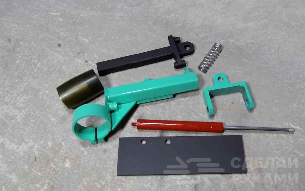 К основной части механизма автор приваривает ограничитель хода и крепление для опорной пластины.