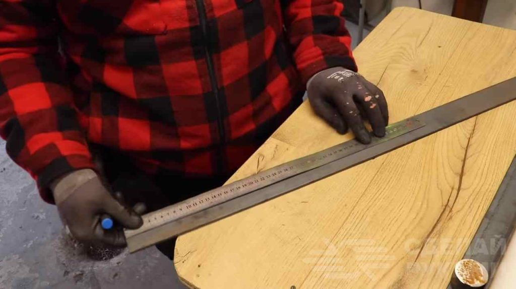 Для начала нужно определиться с будущим размером инструмента, и отрезать необходимую длину полосы. Затем немного сгибаем один край.